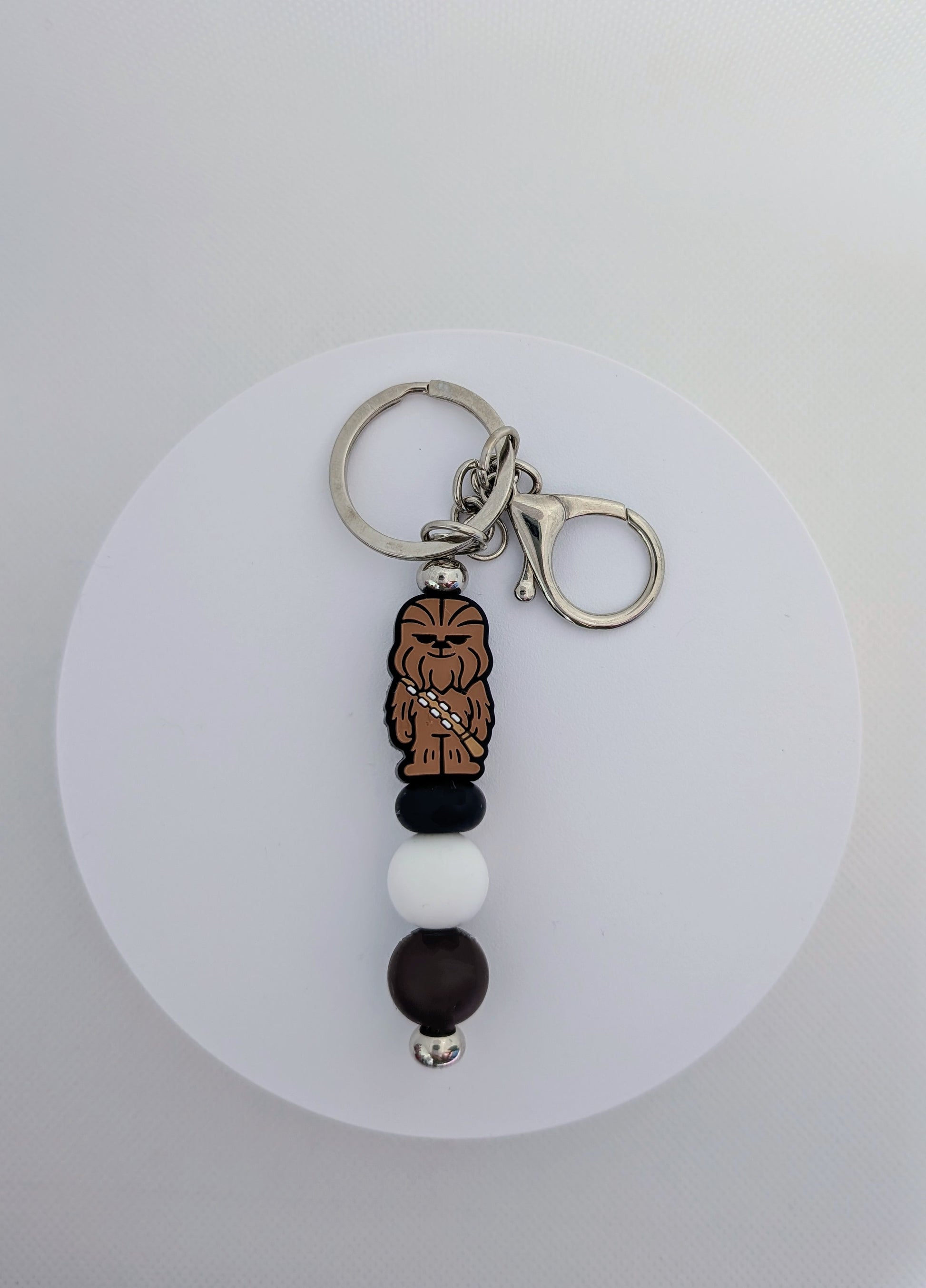 Llavero con un diseño de Chewbacca. Es un accesorio práctico y a la misma vez decorativo con cuentas de silicone duraderas y facil de limpiar, color plateado.