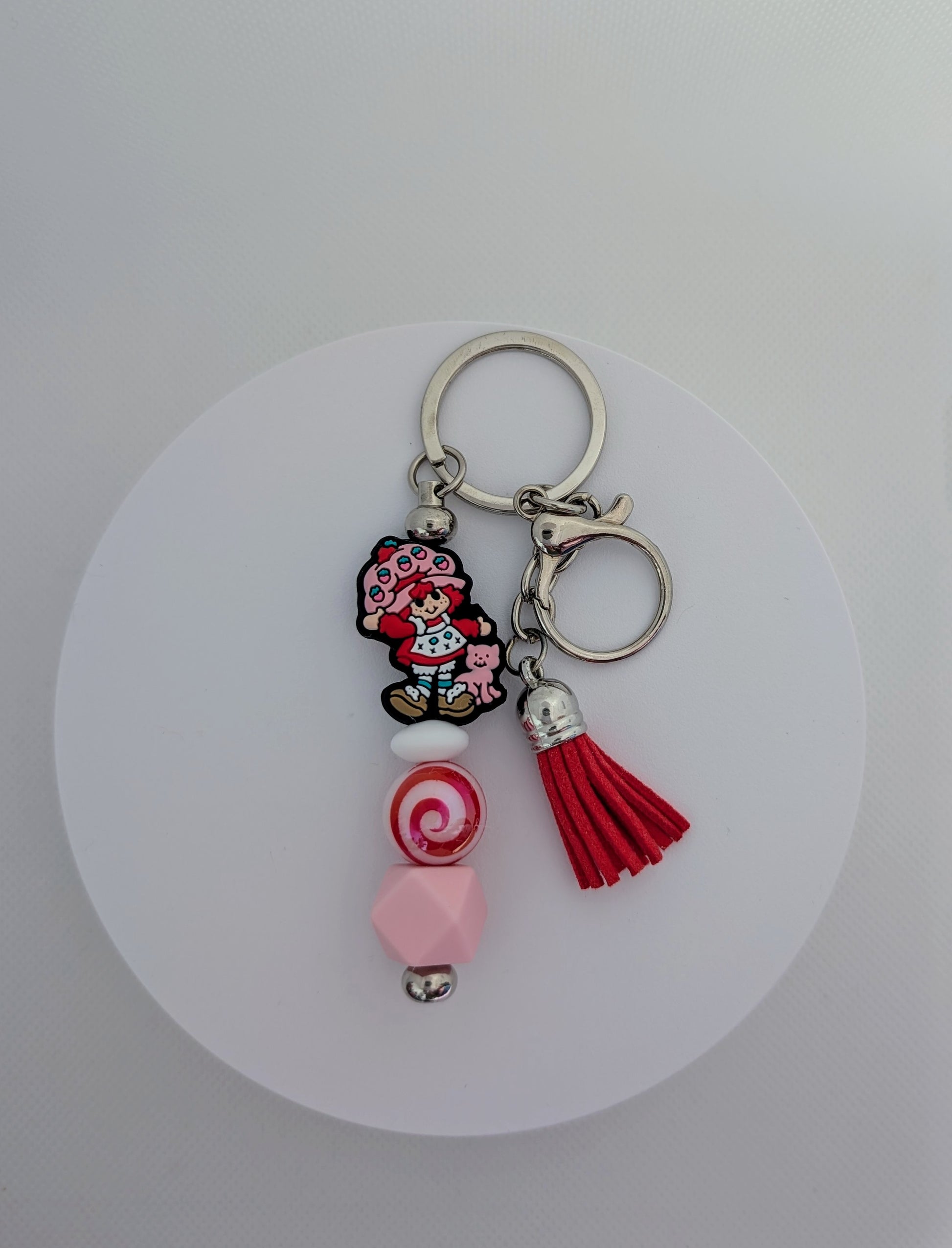 Llavero plateado de cuentas, diseño retro de Strawberry Shortcake, hermoso accesorio práctico y decorativo.